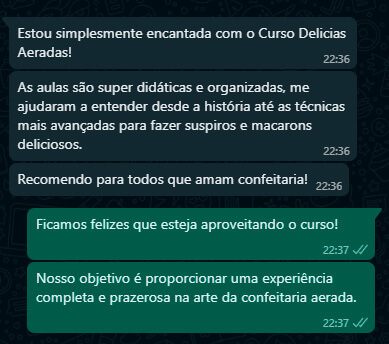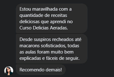 Não se preocupe se você é iniciante total na arte de fazer Delícias Aeradas. Nosso curso é projetado de forma didática e passo a passo, acolhendo todos os níveis de experiência.
