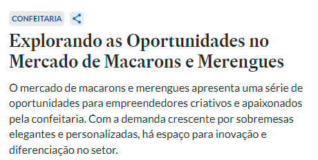 Nossa comunidade proporciona o ambiente ideal para estabelecer conexões profissionais significativas, trocar experiências inspiradoras e expandir conhecimentos coletivamente. Cada interação representa uma oportunidade para aprimorar suas habilidades e acelerar sua jornada como criador de delícias aeradas. Junte-se agora e desbloqueie o potencial de uma comunidade unida pela paixão e comprometimento com a produção artesanal de macarons e suspiros.